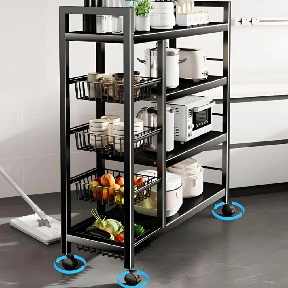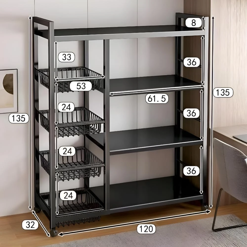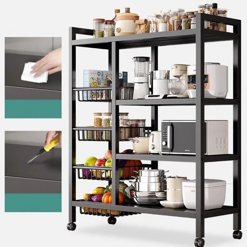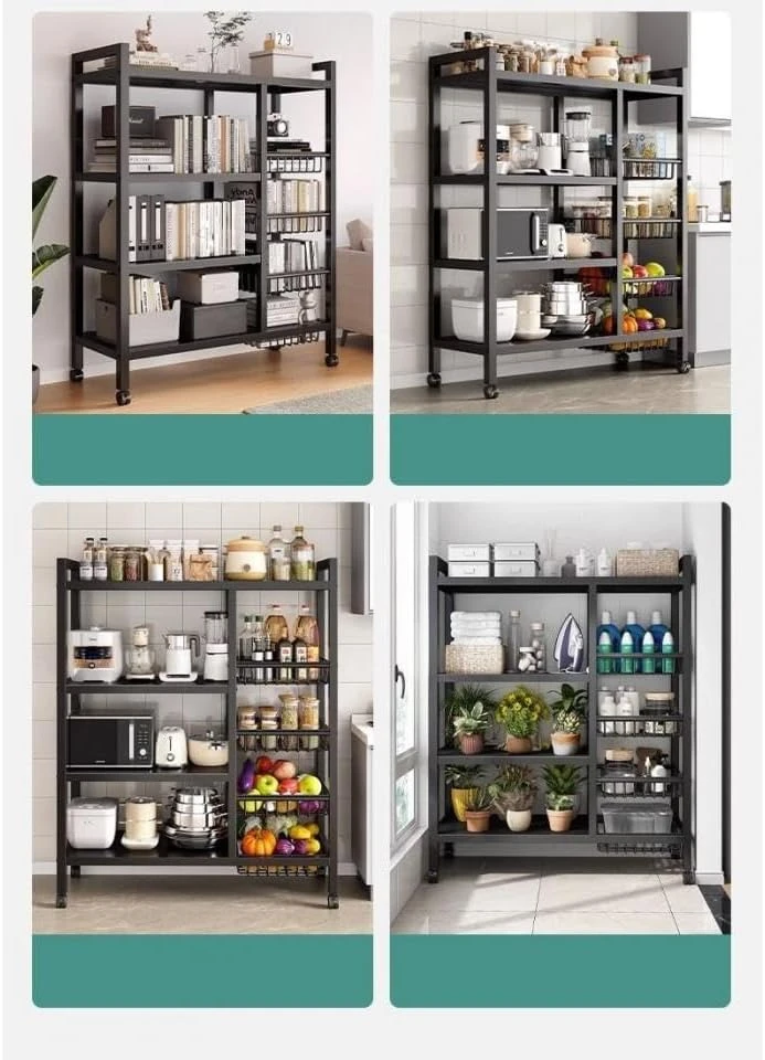 [Easy to move]: The kitchen shelf organizer is equipped with swivel wheels and non-slip feet. The swivel wheels are easy to move and can be easily placed in the kitchen, living room, office or garden. [Easy to Assemble]: The multi-layer vertical bread rack is easy to install. The assembled metal storage rack is sturdy and won't shake, so you don't have to worry about it falling apart again. |