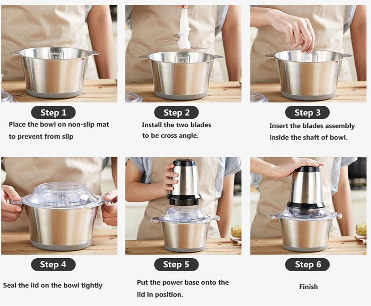 ★Easy to use and clean: The mincer takes apart easily and clean up is a snap. best of all, non-slip rubber ring for stable operation; rubber sealing ring - free from splashing; at the same time you can free to control the degree of crushing,safe and practical, it won't take up space in your kitchen. ★ Quick: The Motor is full copper,and the blade is sharp ,Usually just 6 seconds can be finished Finished ground meat ,and less time for vegetable. |