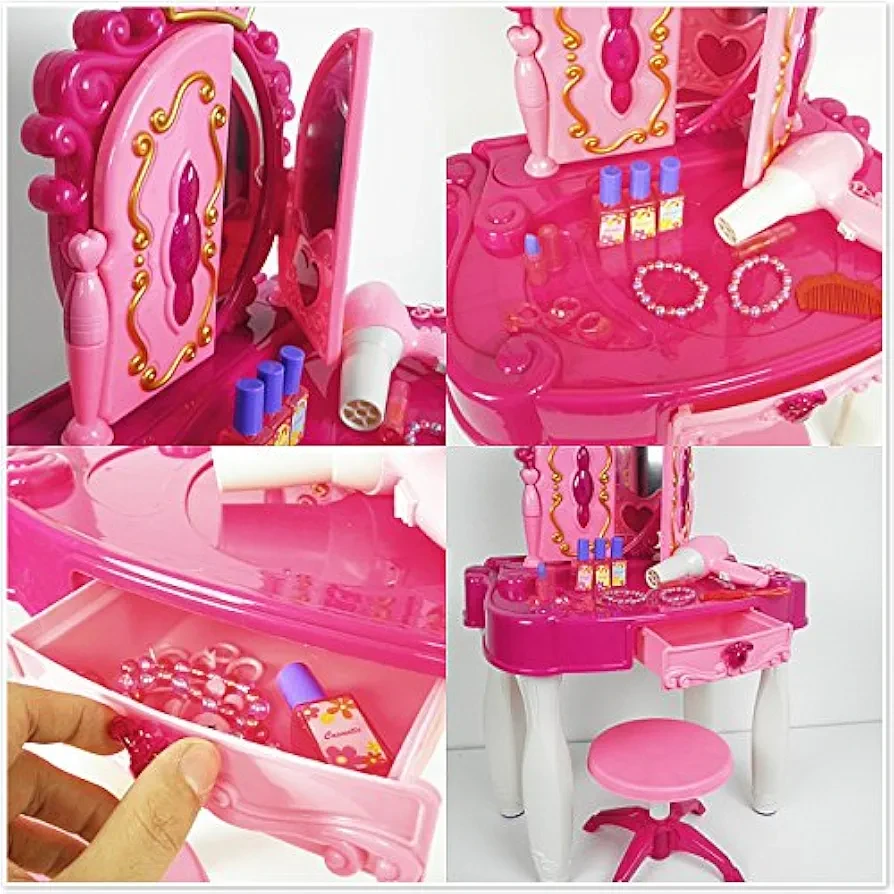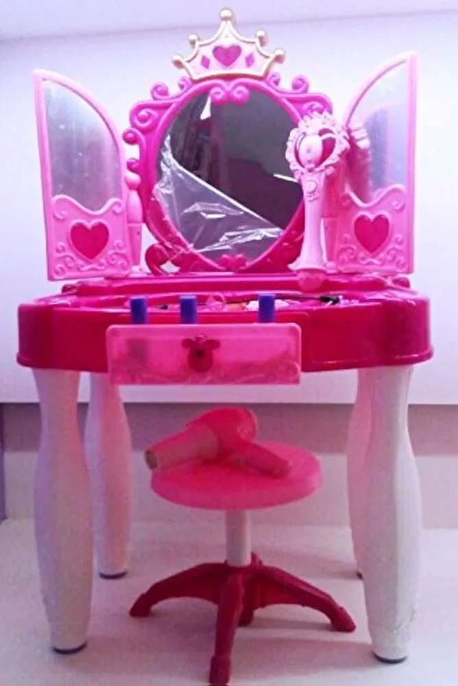 Girls Pink Musical Dressing Table Vanity Light Mirror Play Set