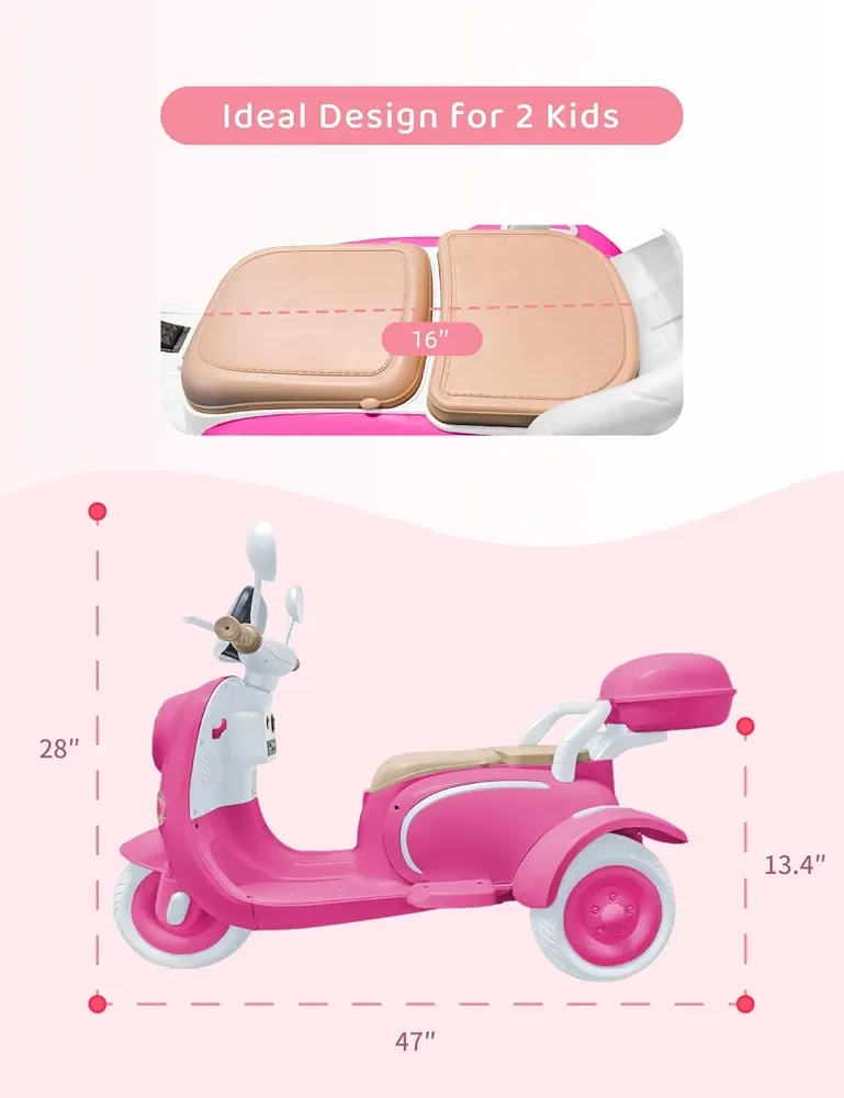 🎁【Two Seat Design】The back seat of electric motorcycle for kids can be flipped over for older children to sit on. If you have two children, you can rest assured that they can ride together.