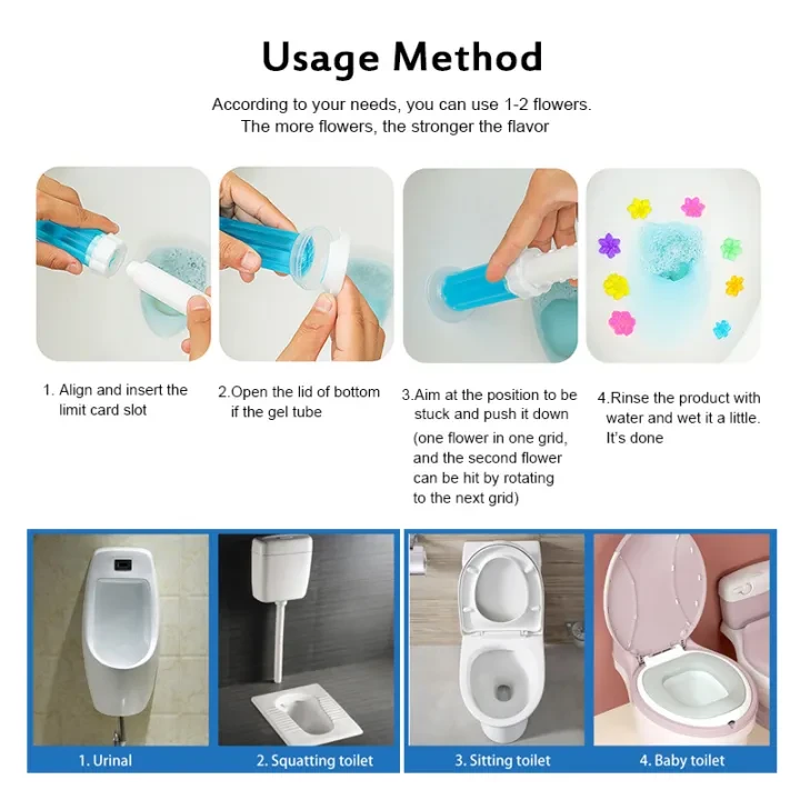 1.Floral Fragrance Toilet Cleaner: Our toilet cleaner gel has a pleasant floral fragrance that leaves your bathroom smelling fresh and clean. 2.Toilet Deodorizer Gel: Our aromatic toilet gel deodorizes naturally, eliminating odors without leaving any residue or trace. 3.Plant-Based Formula: Made from eco-friendly, plant-based materials, our toilet deodorant gel is gentle on your toilet bowl and the environment. In summary, our floral fragrance toilet cleaner offers a natural and eco-friendly cleaning solution for your bathroom needs. |